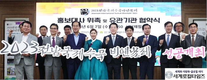[세계로컬타임즈 김명진 기자] 전남국제수묵비엔날레사무국이 ‘2023 전남국제수묵비엔날레’ 홍보대사로 인기가수 송가인 씨를 위촉하고 13개 유관기관과 홍보·마케팅협약을 하는 등 성공개최를 위한 본격 담금질에 들어갔다.