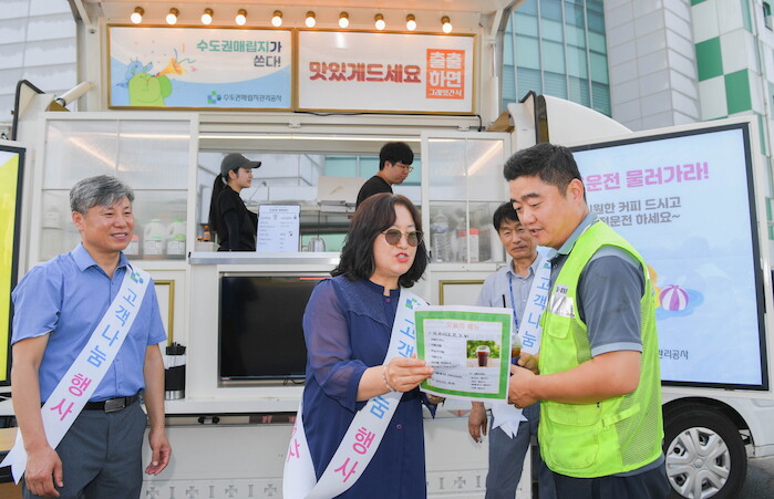 이날 행사는 말복을 맞아 폐기물 운반 기사 쉼터 인근에 커피 트럭을 운영하여 공사 임직원들이 운반 기사들에게 기호에 맞는 시원한 음료를 전달하고 폐기물 운반 차량 청결 준수 캠페인도 함께 홍보했다.