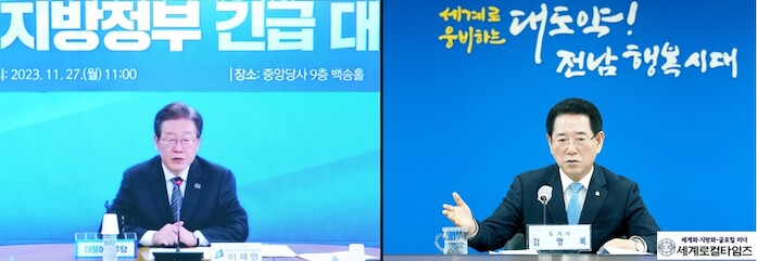 [세계로컬타임즈 김명진 기자] 전남도가 “ 27일 ‘민주당 지방정부 긴급 대책회의’에 김영록 전남도지사가 영상으로 참석해 지방교부세 법정률 상향과 정부 농림·해양 분야 예산증액, 전남 의과대학 설립 등 현안을 건의하고 적극 지원을 요청했다”고 밝혔다.