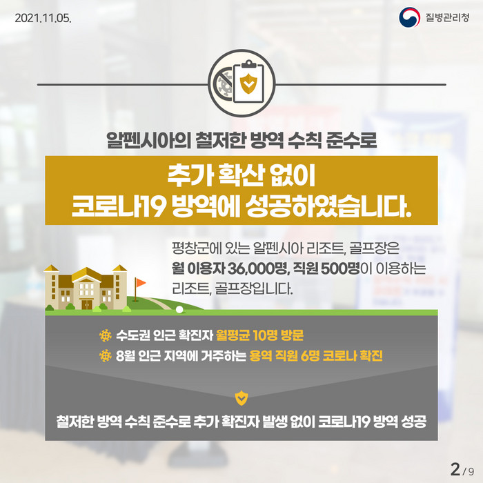 [세계로컬타임즈 손성창 기자] 질병관리청은 방역의 생활화를 위해 홍보하는, '방역 지침 준수 모범사례'로 알펜시아를 선정하고, 카드뉴스로 홍보하고 있다.