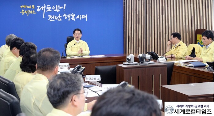 [세계로컬타임즈 김명진 기자] 김영록 전라남도지사는 1일 폭염대응 재난대책회의를 열어 취약계층 보호를 최우선으로 하고 축산·수산 피해 예방 노력도 기울이는 등 분야별 철저한 대응을 지시했다.