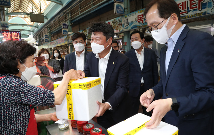 현장에서 박 부지사는 “코로나19 사회적 거리두기 장기화로 소비형태가 비대면으로 바뀌면서 수산시장 같은 전통시장 방문자 수는 눈에 띄게 줄었다”며 “수산물 유통과 위생안전 분야 발전을 위해 올 한 해 도비 약 149억 원을 투입하는 등 지속적인 지원에 나서고 있다”고 말했다.