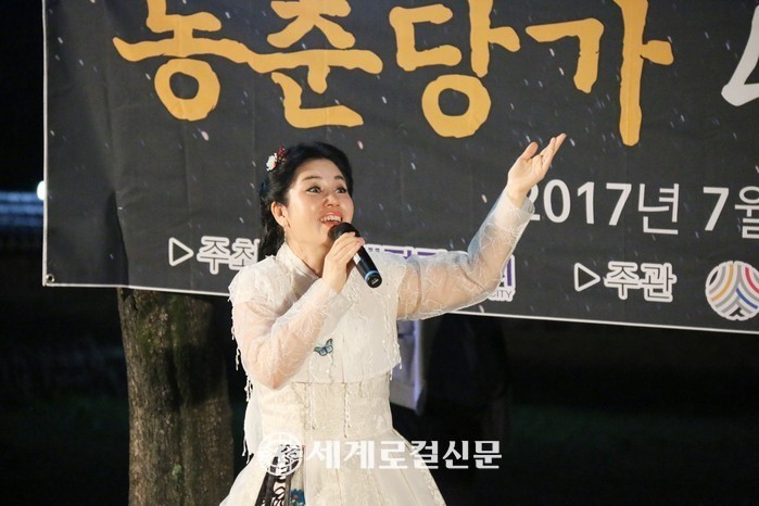 | ▲ 판소리 명창 김소라씨가 ‘동춘당가 400년 여름 생신상’ 육개장 만들기 프로그램에서 참여한 시민들과 함께 '님그리며'를 열창하고 있다. <사진=오영균 기자> |