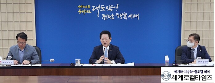 [세계로컬타임즈 김명진 기자] 김영록 전라남도지사는 30일 “동부지역본부의 본부장 2급 직제 승인, 가장 중요 부서인 일자리와, 천년 역사문화를 품은 곳으로서 큰 역할을 할 문화 부서가 가는 것을 도민이 잘 납득하도록 소통하라”고 강조했다.