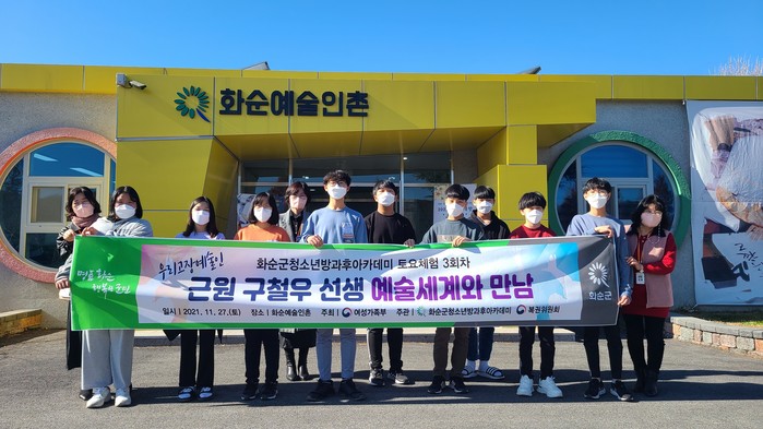 | ▲ 화순군 청소년방과후아카데미 학생들이 화순예술인촌 상설전시관과 화순군립석봉미술관을 방문해 토요 문화체험을 했다. 사진은 화순예술인촌 상설전시관에서 청소년방과후아카데미 참여 학생들이 기념촬영 하는 모습.(사진=화순군) |