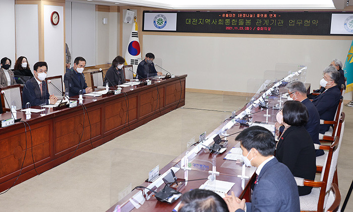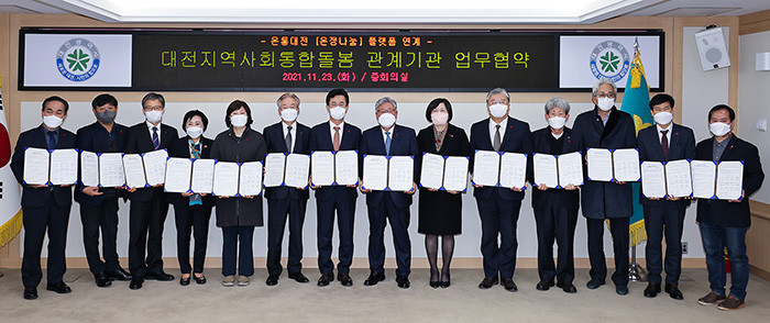 [세계로컬타임즈 민순혜 기자] 대전시는 23일 대전사회복지공동모금회, 충남대학교병원 등 13개 관계기관과 시청 중회의실에서 ‘온통대전 온정나눔 플랫폼 연계 지역사회 통합돌봄사업’협력을 위한 업무협약을 체결했다.