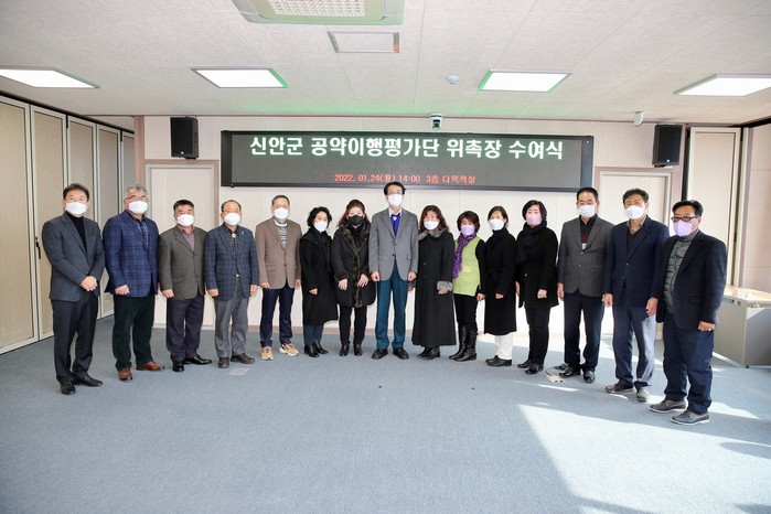 민선7기 신안군수 공약이행평가단은 '신안군수 공약사항 관리 규정'에 따라 군 홈페이지 공모를 통해 무작위로 선정된 15명(남8, 여7) 단원으로 구성됐다.