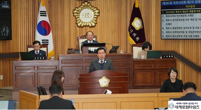 [세계로컬타임즈 김명진 기자] 박홍률 목포시장이 30일 제385회 목포시의회 제2차 정례회에서 2024년도 예산안 제출과 함께 올해 주요 성과와 내년도 주요 시정 운영방향을 제시했다.