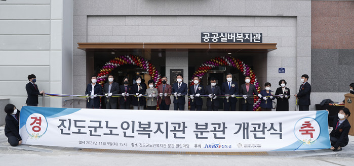 [세계로컬타임즈 김명진 기자] 진도군으로부터 위탁 받아 운영하는 사회복지법인 이랜드복지재단(이사장 박성경) 진도군노인복지관(관장 장애순)에서는 이동진 군수와 기관·단체장, 어르신 등 50여 명이 참석한 가운데 진도군노인복지관 분관 개관식을 가졌다.