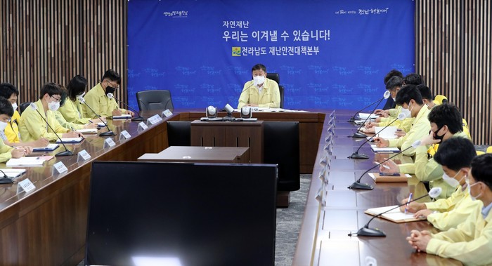 전남도는 이날 도청 재난종합상황실에서 지난 2020년, 2021년과 같은 호우피해가 재발하지 않도록 도 13개 재난협업부서 담당자가 참석한 가운데 ‘여름철 풍수해 대비 계획 점검 및 상황판단 회의’를 열었다.