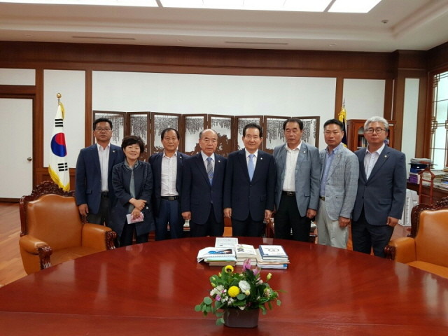 | ▲ 남원시의회 의원들이 24일 정세균 국회의장을 만나 서남대 정상화 방안에 대해 의견을 전달한 후 기념촬영하고 있다.<사진제공=남원시의회> |