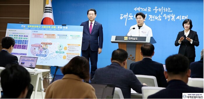 전라남도교육청과 전라남도는 28일 오후 전남도청 브리핑룸에서 공동 브리핑을 갖고 이런 내용의 ’교육발전특구 시범지역 선정 1차 공모’ 결과를 발표했다.