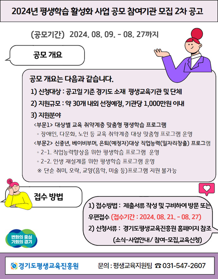 | ▲ 2024년 평생학습 활성화 사업 2차 공모 포스터. [자료=경기도] |