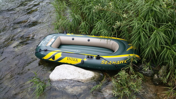| ▲ 가평군 캠핑장 하천에서 사고난 고무보트.<사진제공=가평소방서> |