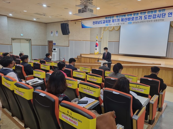 [세계로컬타임즈 김명진 기자] 전라남도교육청이 6일 전라남도교육연구정보원 5층 합동강의실에서 ‘전라남도교육청 제1기 예산바로쓰기 도민감시단(이하 도민감시단)’ 역량강화 연수를 실시했다.