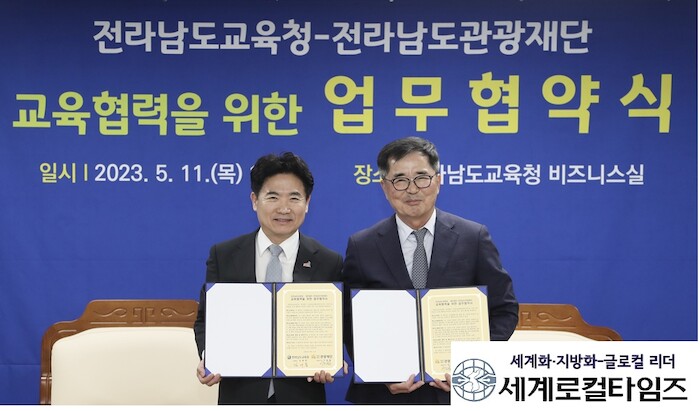 [세계로컬타임즈 김명진 기자] 전라남도교육청이 11일 전라남도교육청 비즈니스실에서 전라남도관광재단(대표이사 이건철)과 교육협력을 위한 업무협약을 체결했다.