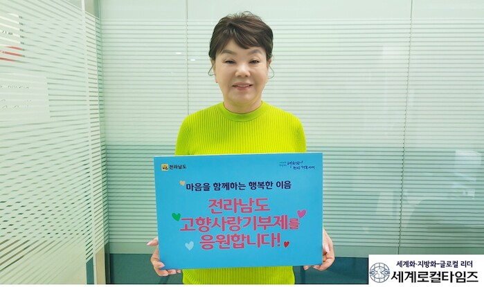 [세계로컬타임즈 김명진 기자] 전남도가 “향우 등 전 국민을 대상으로 고향사랑기부제 취지와 참여 방법을 널리 알리기 위해 ‘전남 고향사랑기부제 동행 응원 릴레이’를 추진한다”고 17일 밝혔다.