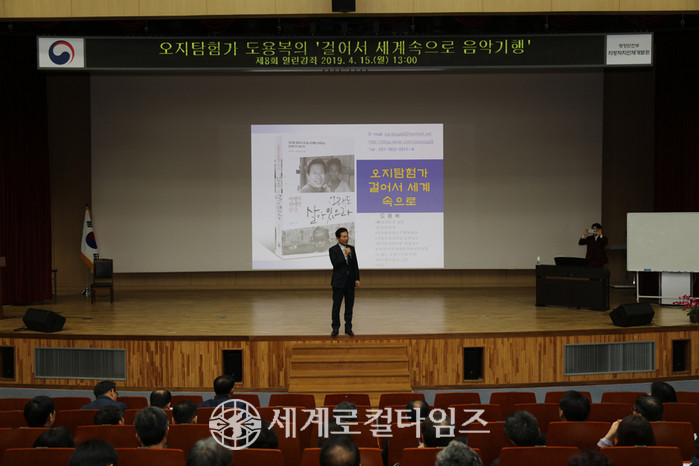 15일 자치인재원에 따르면 지역 주민 등 400여 명이 참석한 가운데 열린 이번 강좌에서는 오지탐험가 도용복이 특강 강사로 나서 음악과 함께 지금까지 170개국 오지를 탐험하였던 경험을 ‘걸어서 세계속으로 음악기행’이라는 주제로 진행했다.