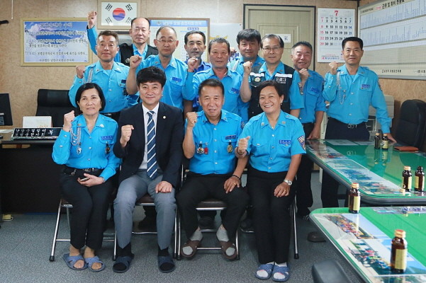 | ▲ 6일 신민철 남양주시의회 의장(왼쪽에서 두번째)은 이패동 모범운전자회 방문해 기념사진 촬영 모습. <사진제공=남양주시의회> |