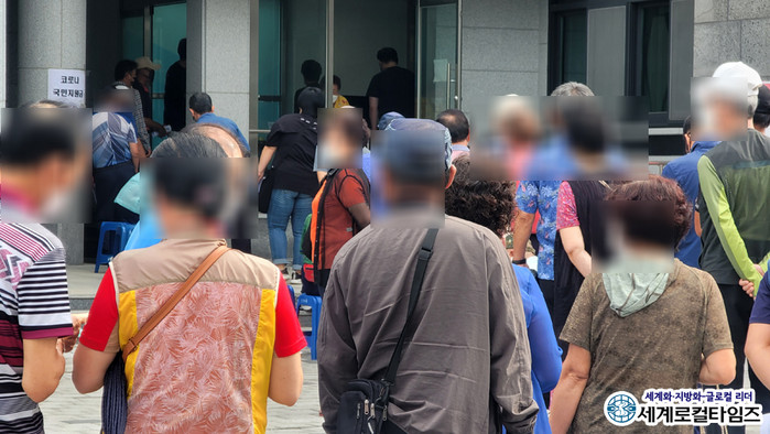 [세계로컬타임즈 글·사진 조주연 기자] 전북 김제시가 13일 ‘코로나19 상생 국민지원금’ 오프라인 신청을 시작했지만 정작 거리두기는 실종된 모습을 보였다.