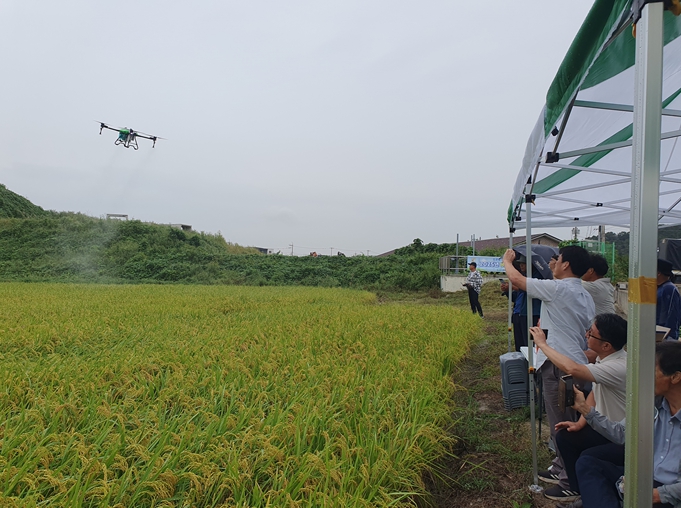 농업기술센터는 올해 ‘드론용 비산 저감 AI 노즐 및 분무장치’ 신기술 시범사업을 추진해 농촌진흥청 국립농업과학원이 개발한 ‘비산저감형 AI 노즐 드론방제기’를 보급했다. 그 결과, 약제 방울의 비산량이 기존의 동력분무기 대비 30% 이상 줄어든 것으로 확인됐다.