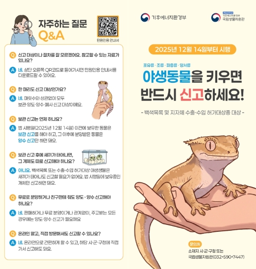 법 시행 이전부터 키우던 지정관리 야생동물은 2026년 6월 13일까지 신고할 경우 지속적으로 키울 수 있지만 증식·거래는 허용하지 않는다.