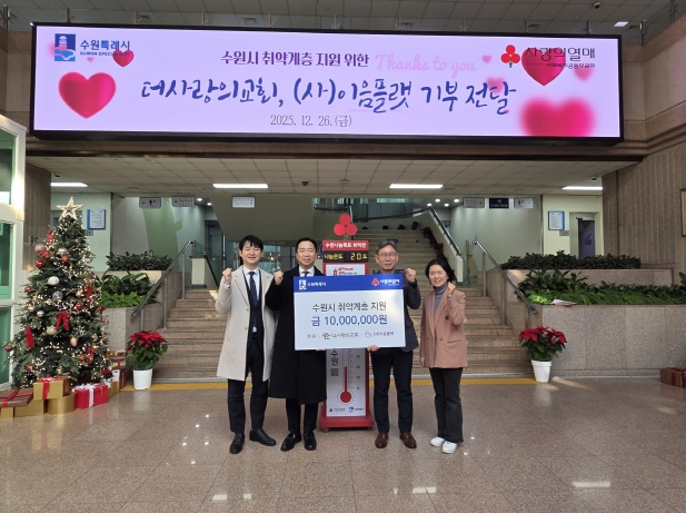 수원시청에서 열린 기부금 전달식에는 임대호 더사랑의교회 목사, 김인배 시민복지국장 등이 참석했다.