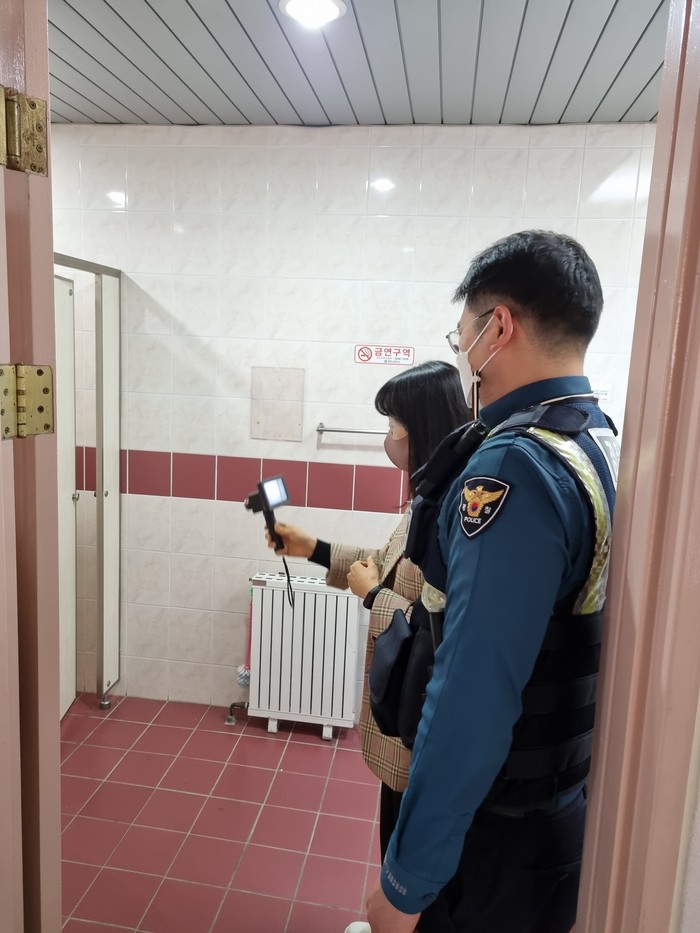 특히 이번 점검은 학교 내 성범죄를 사전 예방하고자 적외선탐지기 등 탐지장비를 활용해 학교 내 공중화장실 카메라 설치 유무 등을 점검했다. 불법촬영범죄의 대응력을 높이기 위해 불법촬영 카메라 발견 시 조치사항과 피해자 지원안내 전단지 배부 활동을 병행했다.