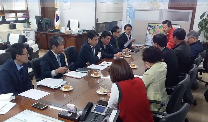 | ▲ 지난 16일 인천 서구 구청장실에서 열린 검단주민총연합회와 간담회에서 참석자들이 지역 현안에 대해 논의하고 있다.(사진=인천 서구 제공) |