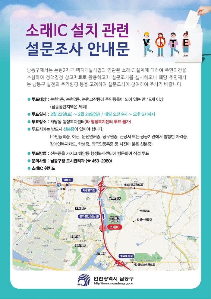 | ▲ 소래IC 건설 설문조사 안내문(사진=남동구 제공) |