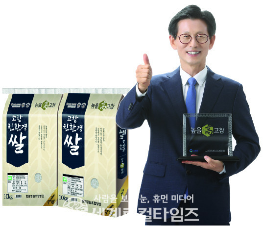 | ▲높을고창 쌀과 유기상 고창군수(사진=고창군 제공) |