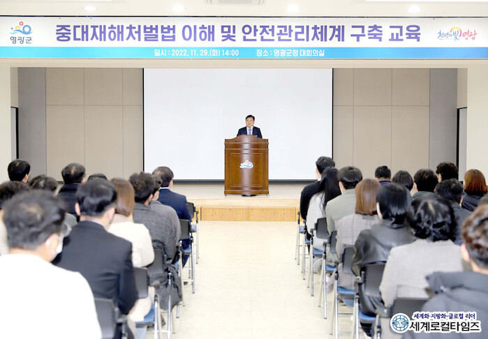 [세계로컬타임즈 이남규 기자] 전남 영광군이 간부공무원과 관리감독자 등 공무원 200여 명을 대상으로 중대재해예방 및 안전관리 역량 강화 교육을 실시했다.