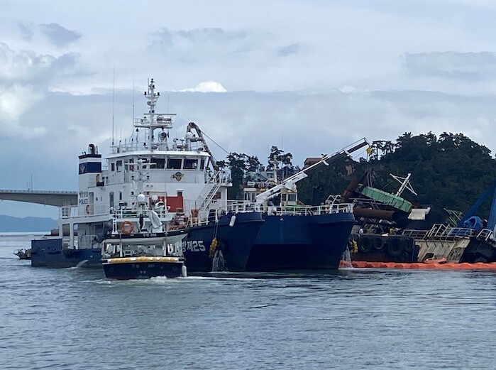 [세계로컬타임즈 김명진 기자] 전남 무안군 도리포 인근 해상에 정박 중인 준설선에서 기름이 유출돼 해경이 긴급 방제 작업을 실시했다.