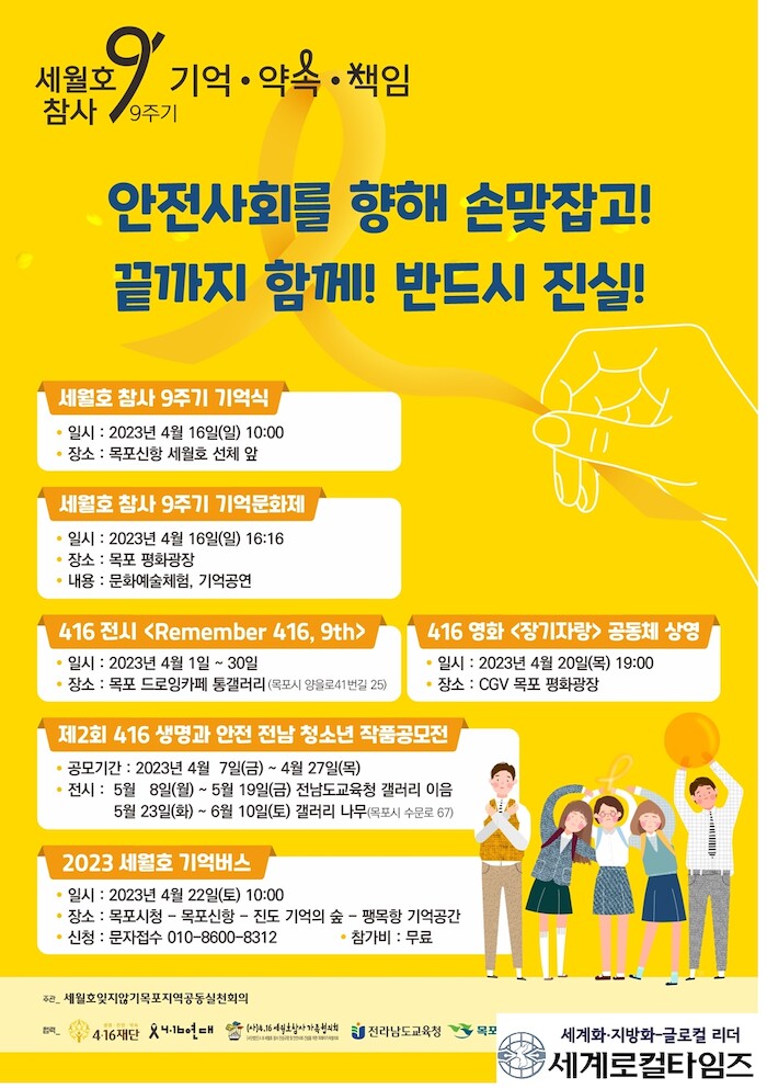 [세계로컬타임즈 김명진 기자] 세월호 참사 9주기를 맞아 세월호가 거치되고 있는 목포에서 다양한 추모행사가 열린다.
