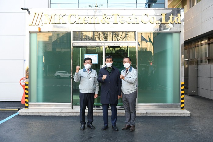 [세계로컬타임즈 김상우 기자] 안산시는 25일 관내 대표 표면처리기업인 ㈜엠케이켐앤텍을 방문해 기업현장에서 겪는 애로사항을 청취하고 기업발전 방안을 논의했다.