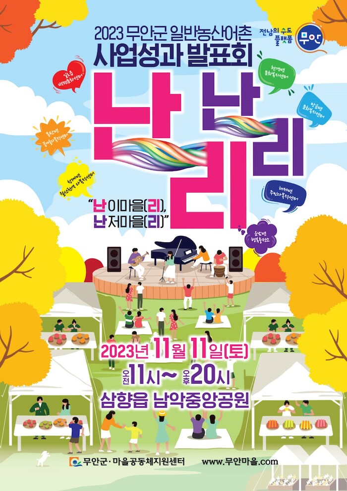 [세계로컬타임즈 박종현 기자] 전남 무안군은 2023년 무안군 일반농산어촌개발 사업성과 발표회를 11월 11일 남악 중앙공원 일원에서 개최한다고 밝혔다.
