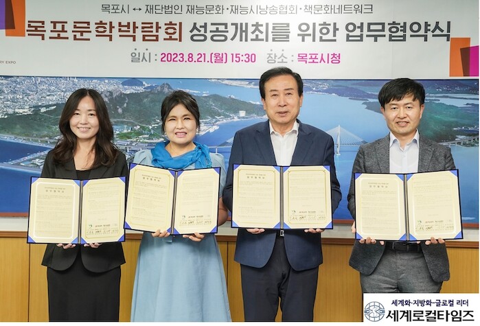 [세계로컬타임즈 김명진 기자] 목포시가 지난 21일 (재)재능문화, 재능시낭송협회, 책문화네트워크와 ‘목포문학박람회’ 성공 개최를 위한 업무협약을 체결했다