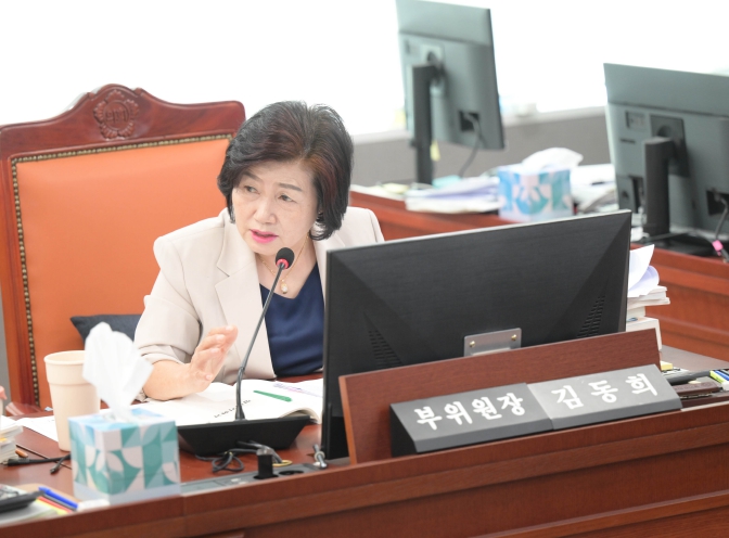 이번 심사에서 김동희 부위원장은 먼저, 교육재정부담금 277억 5천만 원 감액과 관련하여 “도세 세입 변동으로 인한 법정부담금 변동이라고만 설명하는 것은 부족하다”며, 취득세·지방교육세 등 주요 세목의 세입 감소 원인과 세입 전망 기준을 명확히 제시할 것을 요구했다.