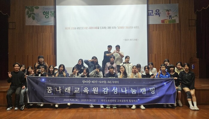 대전교육연수원 김병수 꿈나래교육부장은 “자연 속에서 함께 움직이고 대화하는 과정이 학생들에게 쉼과 회복, 그리고 성장을 동시에 제공했다”며 “앞으로도 ‘다함께, 신나게, 나답게’라는 교육 비전 아래 학생들의 학교생활 적응력과 공동체 역량을 높이는 체험학습을 꾸준히 이어가겠다”고 밝혔다.