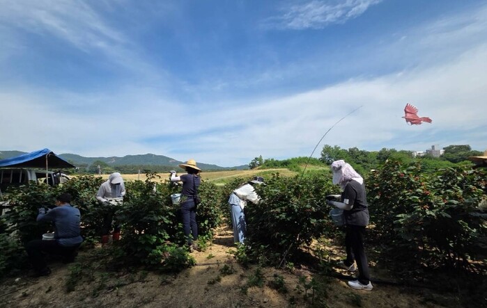 이날 일손돕기에는 옥천읍 행정복지센터 직원 20명이 참여했으며 이들은 옥천읍대천리에 위치한 산딸기 밭에서 구슬땀을 흘렸다.
