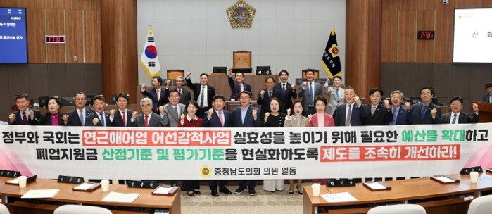 도의회는 5일 열린 제362회 정례회 제1차 본회의에서 편삼범 의원(보령2·국민의힘)이 대표 발의한 ‘연근해어업 어선감척사업 제도 개선 촉구 건의안’을 채택했다.