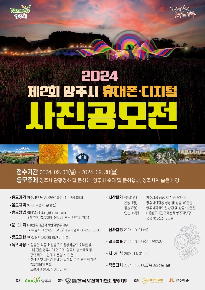 | ▲ ‘2024년 제2회 양주시 사진(휴대폰, 디지털) 공모전’ 포스터. [자료=양주시] |