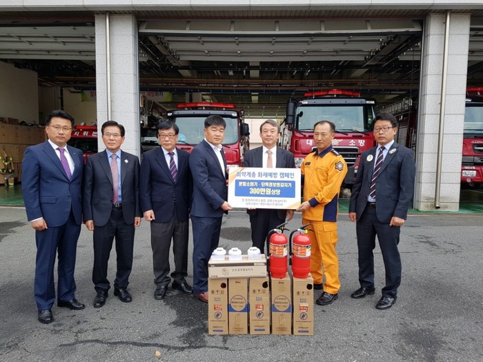 이날 협의회는 취약계층 화재예방 캠페인 일환으로 중원라이온스클럽, 광명소방설비(주)로부터 기탁받은 분말소화기 및 단독경보형감지기 기부행사를 가졌다.