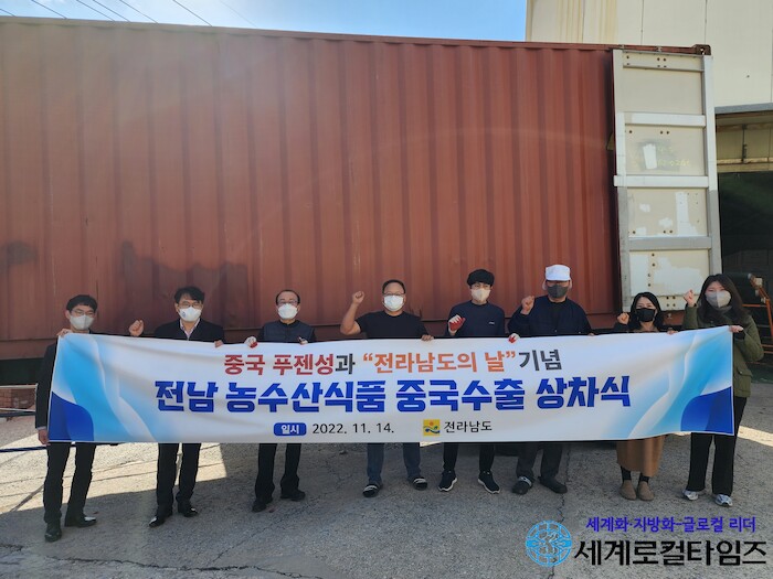 [세계로컬타임즈 김명진 기자] 전라남도는 15년째 우호교류를 이어온 중국 푸젠성으로의 전남 농수산식품 수출을 축하하고 수출 활성화를 기원하는 수출 상차식을 지난 14일 무안 홍도식품에서 개최했다.