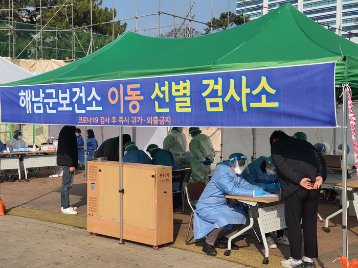 | ▲해남군 군민광장 이동선별 검사소 운영 (사진 = 해남군) |