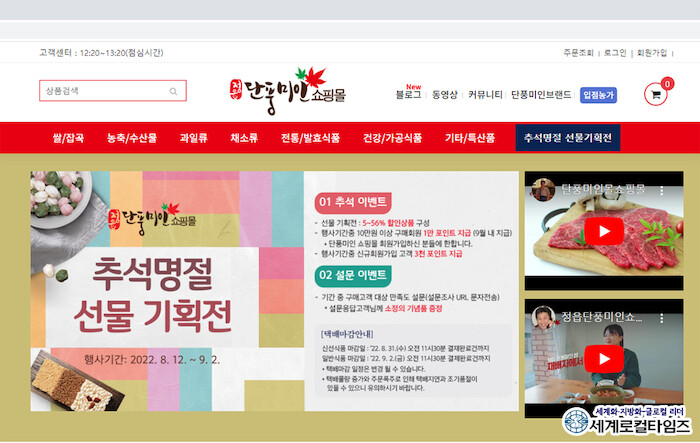 [세계로컬타임즈 조주연 기자] 전북 정읍시가 추석 명절을 앞두고 다음 달 2일까지 온라인 단풍미인쇼핑몰 추석 명절 선물 기획전을 운영한다.