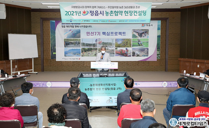 [세계로컬타임즈 조주연 기자] 전북 정읍시가 15개 읍·면 마을 대표 등 지역주민들을 대상으로 21일 농촌협약 현장 컨설팅과 주민설명회를 가졌다.