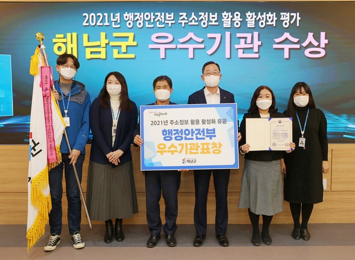 [세계로컬타임즈 강축복 기자] 해남군이 행정안전부에서 주관하는 2021년 주소정보 활용 활성화 유공 우수기관으로 선정돼 기관 표창을 수상했다.