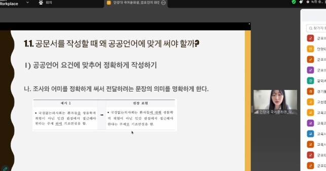 이번 교육은 국립국어원 국어문화학교의 ‘찾아가는 연수’ 프로그램을 활용하여 추진됐다. ‘쉽고 바른 공공언어 쓰기’를 주제로 ▲쉽고 바른 공공언어 사용의 중요성과 방법, ▲공공언어에 맞는 공문서 작성 기준, ▲실제 공문서 쓰기에 적용 등 실무에 즉시 활용할 수 있는 내용으로 구성됐다.
