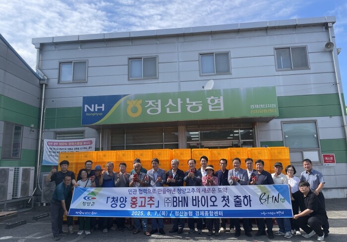 이날 출하식에는 김돈곤 군수를 비롯해 ㈜BHN바이오 김태윤 생산본부 공장장, 농협중앙회 청양군지부 이동수 지부장, 정산농협 황인국 조합장, 계약재배 농가 등 40여 명이 참석해 청양고추의 유통 확대에 대한 기대를 공유했다.